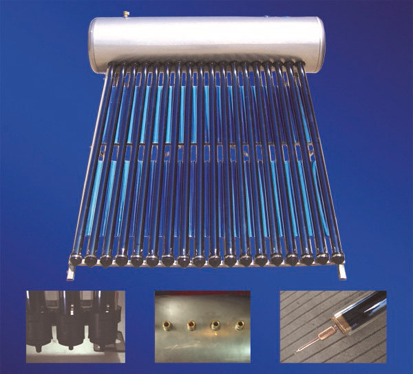 簡介:水箱外膽:彩色鋼板或不銹鋼板的厚度0.4mm,水箱外徑470mm, 水箱內(nèi)膽:3042B不銹鋼板材、或者搪瓷內(nèi)膽 水箱內(nèi)置:1.5kw的電加熱,T/P閥、單向閥、鎂棒; 熱管: Φ 58mm*1800mm,鈦金真空管 保溫層:聚氨酯發(fā)泡,1:1黑白料配比