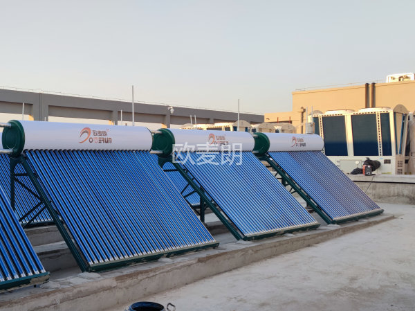 項(xiàng)目配置30臺(tái)歐麥朗承壓太陽(yáng)能+承壓水箱+電加熱輔助