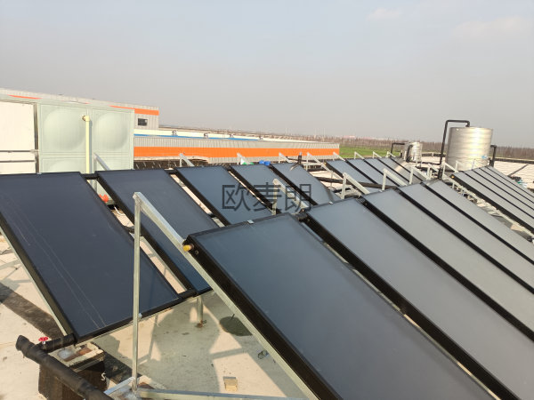 項目配置:20塊平板太陽能集熱器+一個圓形保溫水箱+一套電加熱(用于冬天陰雨天等光照不足天氣輔助加熱)