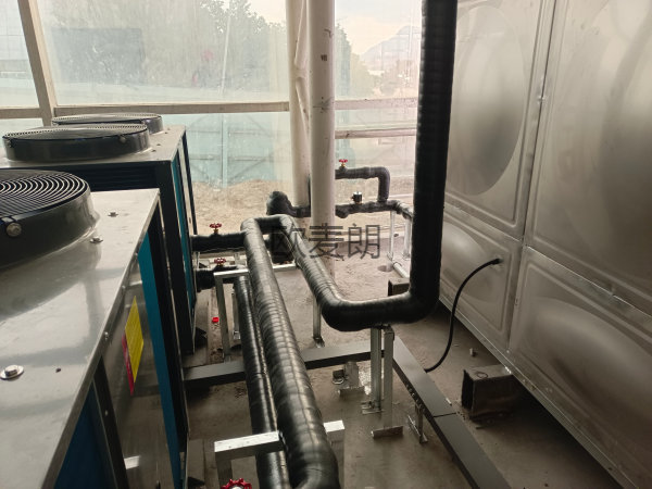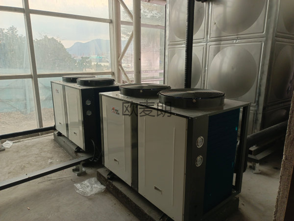 項目配置:兩臺歐麥朗熱泵熱水機(jī)組+15噸方形水箱