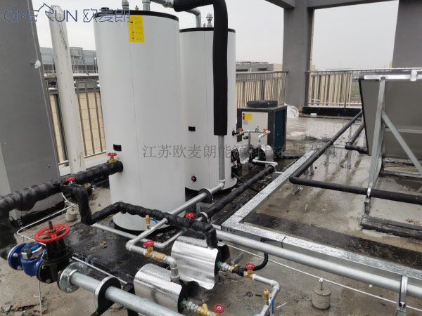 太倉國際車聯(lián)網(wǎng)大數(shù)據(jù)產(chǎn)業(yè)園需要熱水系統(tǒng),與歐麥朗合作,采用太陽能空氣能結(jié)合的熱水系統(tǒng),滿足日常洗浴用水。該熱水系統(tǒng)采用平板太陽能+空氣能熱泵機組+承壓水箱來提供熱水。太陽能在晴好天氣就能滿足日常熱水需要,而且不需要任何運營費用,只有在冬季、陰雨天和光照不足的天氣才會使用空氣能輔助加熱,而且本項目采用承壓式熱水系統(tǒng)設(shè)計方案,使原本就很節(jié)省運營成本的方案更加節(jié)??!