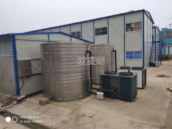 該項(xiàng)目為新建項(xiàng)目,為滿足前期土建施工,配置空氣能熱水系統(tǒng)。工地工人約600人,配置20噸水箱,兩臺(tái)10P空氣能滿足正常的熱水供應(yīng)??諝饽芙?jīng)濟(jì)、節(jié)能、環(huán)保,為公司建設(shè)添磚加瓦,后期待項(xiàng)目完工后,直接用于員工宿舍樓熱水系統(tǒng)。實(shí)現(xiàn)了機(jī)組的較大化利用。