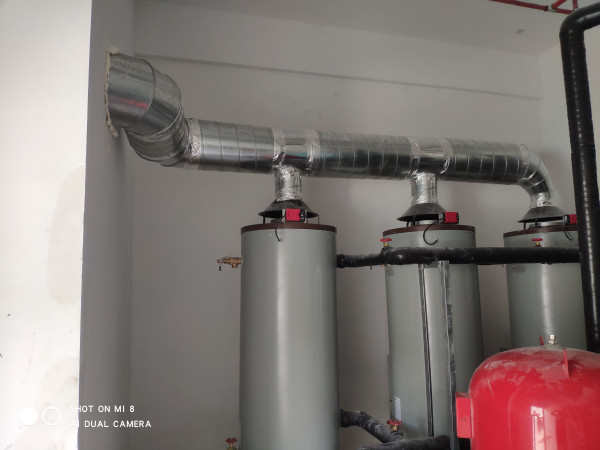 整個系統(tǒng)設(shè)計為54塊平板太陽能集熱器+3臺50Kw的容器式燃?xì)鉄崴疇t+4立方的容積式換熱器相結(jié)合的系統(tǒng)。整個系統(tǒng)以免費的太陽能集熱器為主,燃?xì)鉄崴疇t為輔的加熱模式,最大化節(jié)能能源和保證日常用水需求。