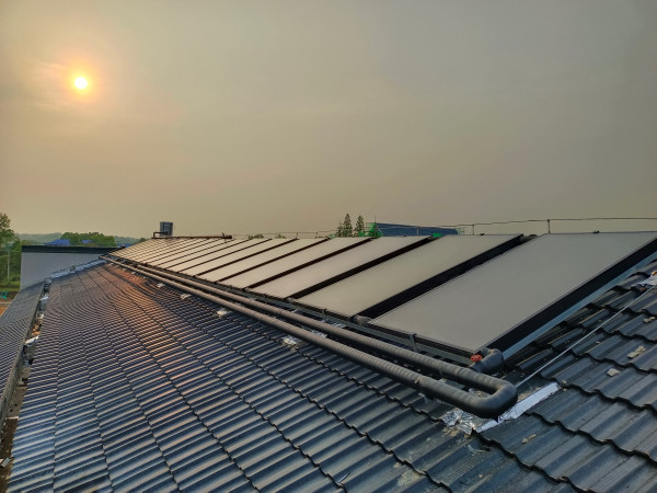 系統(tǒng)優(yōu)勢(shì):在晴好天氣時(shí),太陽(yáng)能集熱器將吸收的太陽(yáng)能熱量通過板式換熱器將熱量轉(zhuǎn)換到保溫水箱,對(duì)保溫水箱里的水加熱,使保溫水箱內(nèi)的水溫升高,保溫水箱內(nèi)的溫度達(dá)到設(shè)定的溫度值,以此達(dá)到直接利用儲(chǔ)熱水箱內(nèi)的熱水。若在連續(xù)陰、雨天或太陽(yáng)不足的情況下,太陽(yáng)能集熱器吸收的熱量不能滿足熱負(fù)荷的需要,則自動(dòng)啟動(dòng)空氣源對(duì)儲(chǔ)熱水箱加熱至指定溫度(55度,可調(diào)節(jié)),當(dāng)達(dá)到指定溫度后,設(shè)備自動(dòng)停止工作,以最大化節(jié)約能源,同時(shí)保證系統(tǒng)熱水的正常供應(yīng).系統(tǒng)已安裝調(diào)試完畢。