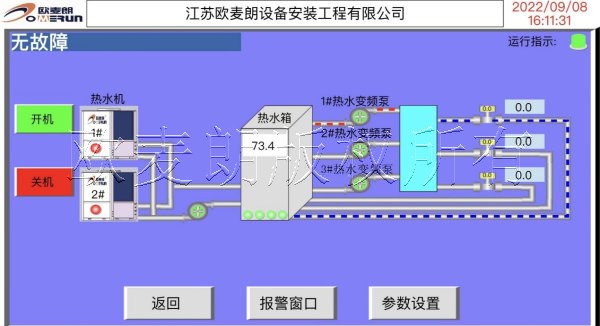 在歐麥朗空氣能熱泵高溫?zé)崴到y(tǒng)中,空氣能熱泵機(jī)組通過熱泵循環(huán),將自然界中的低溫?zé)崮芤詨嚎s和膨脹的方式轉(zhuǎn)化為高溫?zé)崮?,然后將高溫?zé)崮芡ㄟ^熱交換器傳遞到聚氨酯發(fā)泡生產(chǎn)過程中的熱水中。在這個(gè)過程中,空氣能熱泵機(jī)組的能源利用效率很高,并且能夠大大降低能源消耗和環(huán)境污染。