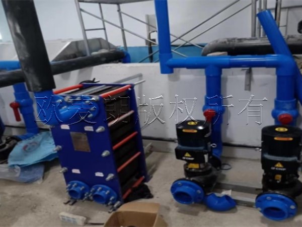 經(jīng)計算得出配備“OML-500A-II(50P)”,總共配備5臺(50匹)機組提供即可滿足此育苗池的設(shè)計溫度要求;整套系統(tǒng)采用間接加熱方式,配備儲熱水箱及板式換熱器,通過空氣能熱泵加熱儲熱水箱,水箱溫度可控制在35-40度左右,水箱另一端在連接板式換熱器,板式換熱器另一端連接養(yǎng)殖池,通過熱量傳遞方式進行換熱,以達到養(yǎng)殖池所需的溫度要求。