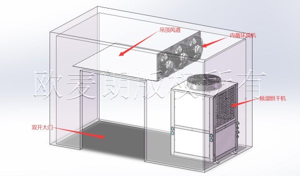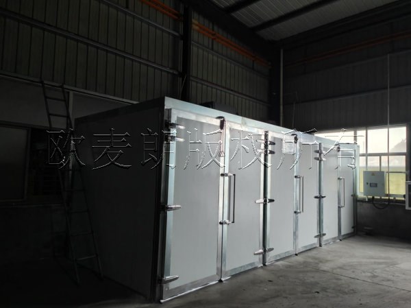 1).烘房尺寸:3850*2050*2550 mm,保溫厚度100mm雙面彩鋼巖棉板5面保溫房。