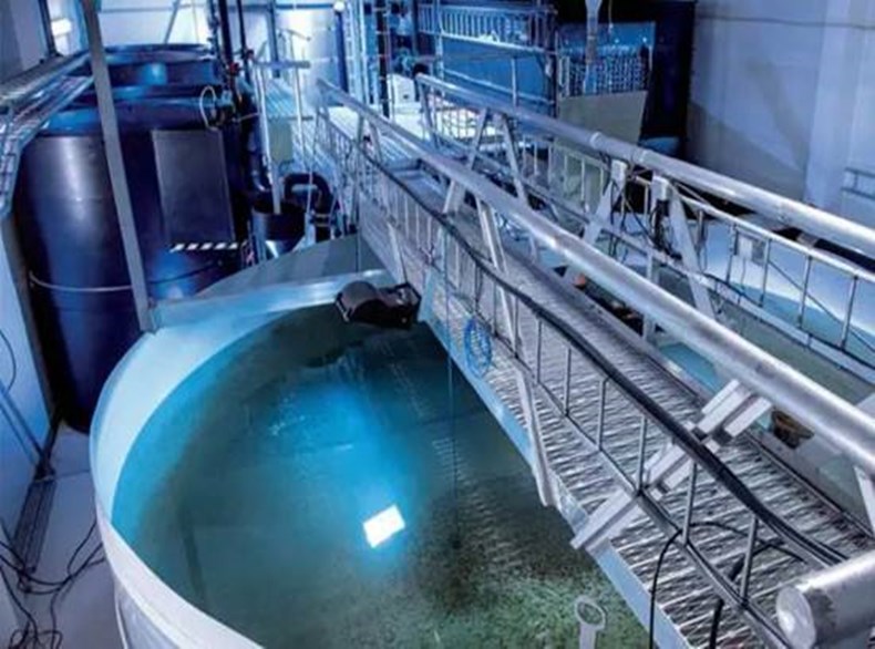 工廠化循環(huán)水養(yǎng)殖模式集現(xiàn)代工程、機電、生物、及飼料等多學(xué)科于一體,在相對封閉空間內(nèi),利用過濾、曝氣、生物凈化、殺菌消毒等物理、化學(xué)及生物手段,處理、去除養(yǎng)殖對象的代謝產(chǎn)物和餌料殘渣,使水質(zhì)凈化并循環(huán)使用,少量補水(5%左右),進行水產(chǎn)動物高密度強化培育。