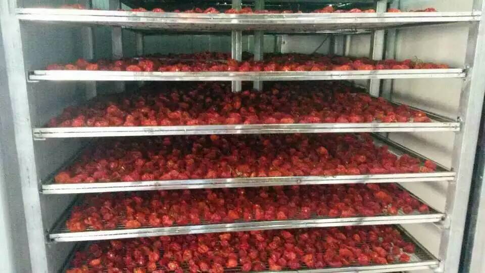 傳統(tǒng)的干燥方法有兩種,一種是人工逐個綁扎。然后長期吊掛在煤火上,另一種方法是日曬 以上兩種常規(guī)干燥法,辣椒品質(zhì)差、花黃殼多、白殼多,污染大、勞動強度高、處理量小。