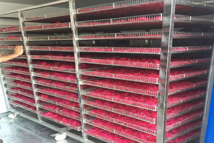對于玫瑰花的色、香、形、味要求很高,要求干燥后原色、原味、原樣,落,傳統(tǒng)的太陽曬干或蒸汽燃煤烘干很難滿足玫瑰花的干燥要求。玫瑰花空氣能烘干設(shè)備能夠滿足玫瑰花、玫瑰花蕾的干燥要求,并且比其他的烘干設(shè)備要60%以上。